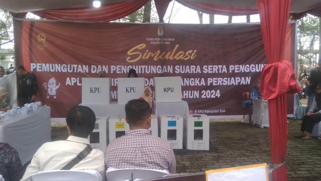 Danramil 04/Perawang Kapten Infantri Bukti Sitepu menjelaskan, simulasi pemungutan suara dan rekapitulasi suara ini dilakukan oleh Komisi Pemilihan Umum (KPU) tingkat Kabupaten Siak.