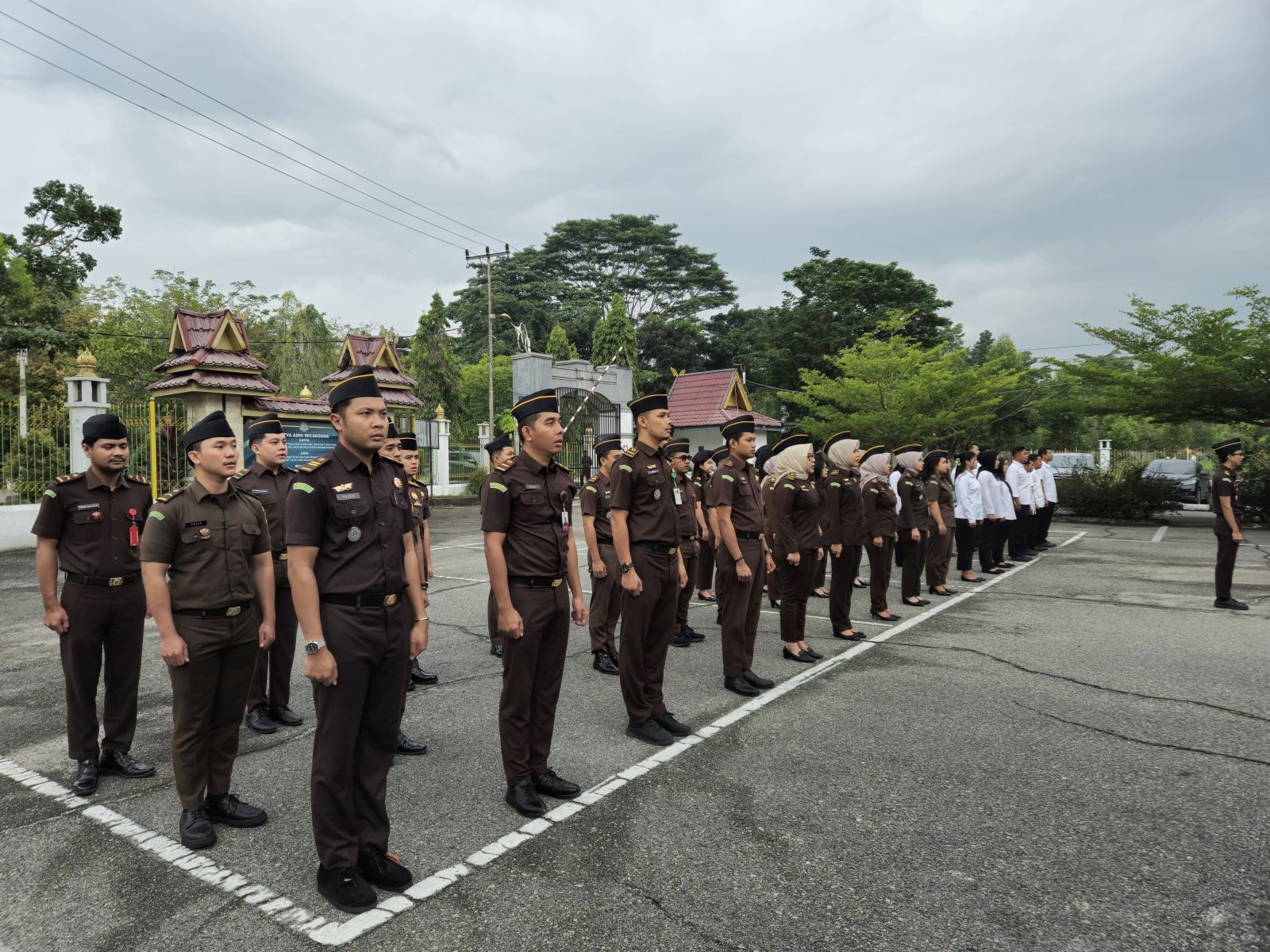 Apel ini dipimpin langsung oleh Kepala Kejaksaan Negeri (Kajari) Rokan Hulu, Fajar Haryowimbuko, S.H., M.H., dan diikuti oleh para Kepala Seksi (Kasi), Kasubbag Pembinaan, seluruh pegawai, serta tenaga PPNPN di lingkungan Kejaksaan Negeri Rokan Hulu.