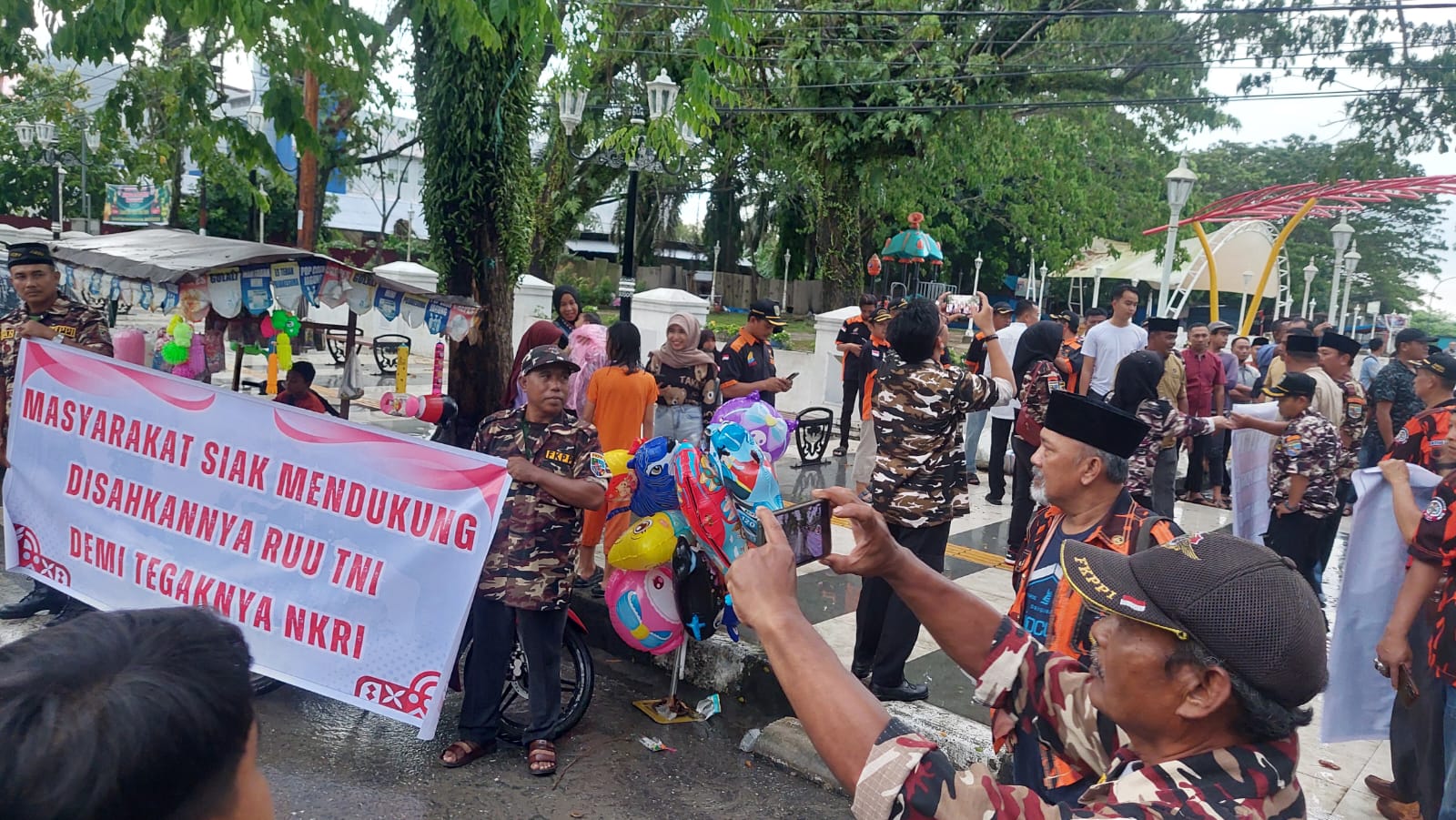 Dalam aksi tersebut, para peserta membentangkan spanduk bertuliskan "Masyarakat Siak Mendukung Disahkannya RUU TNI Demi Tegaknya NKRI". Mereka menyatakan dukungan penuh terhadap pengesahan RUU TNI yang telah disahkan dalam Sidang Paripurna DPR RI pada 20 Maret 2025 lalu.