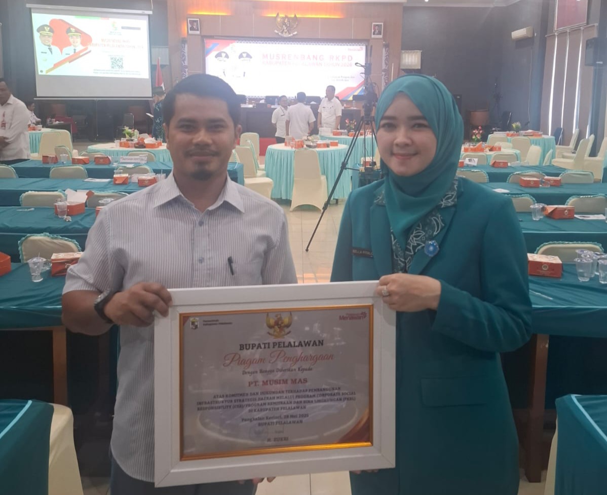 Penghargaan tersebut diserahkan langsung oleh Bupati Pelalawan H. Zukri, SM. kepada Manajer Humas PT Musim Mas, Malinton Purba, SH., dalam acara Musyawarah Perencanaan Pembangunan (Musrenbang) RKPD Kabupaten Pelalawan Tahun 2026, yang digelar di Ruang Rapat Kantor Bappeda Pelalawan, Rabu (28/5/2025).