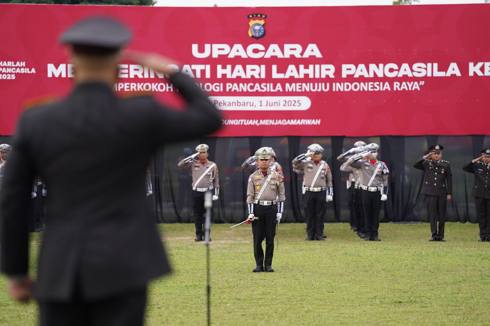 PEKANBARU, CATATANRIAU.COM – Dalam semangat memperkokoh nilai-nilai kebangsaan, Polda Riau menggelar Upacara Peringatan Hari Lahir Pancasila pada Senin, 2 Juni 2025, di Lapangan Apel Mapolda Riau. Upacara dipimpin langsung oleh Wakapolda Riau, Brigjen Pol Jossy Kusumo, SH, M.Han, dan diikuti oleh para pejabat utama serta personel Polda Riau.