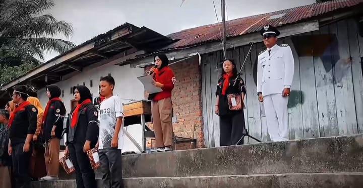 Kampar, Catatanriau.com - Dalam Rangka memperingati detik - detik Proklamasi Pemdes Desa Wisata Buluhcina Kecamatan Siak Hulu Kabupaten Kampar Riau lakukan Upacara Bendera Sang Merah Putih di Jembatan Gantung Duo Suku,17 Agustus 2025.