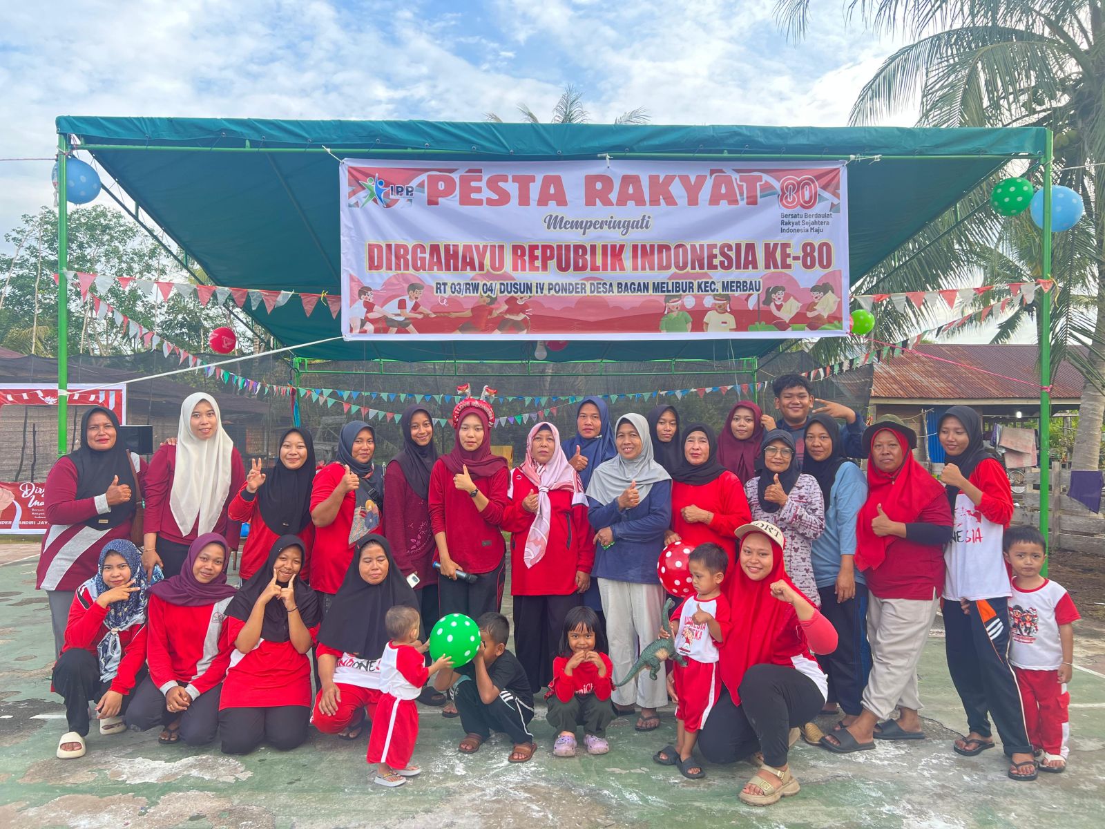 Meranti, Catatanriau.com - Semarak kemerdekaan begitu terasa di RT 03 RW 04 Dusun 04 Desa Bagan Melibur, yang menggelar Pesta Rakyat dalam rangka memperingati HUT RI Ke-80. Bertempat di Lapangan Volly Ponder, kegiatan ini dihadiri antusias warga dari berbagai kalangan, mulai dari anak-anak, remaja, hingga orang tua, Pada Minggu (24/08/2025)
