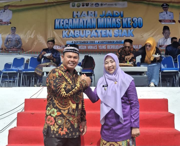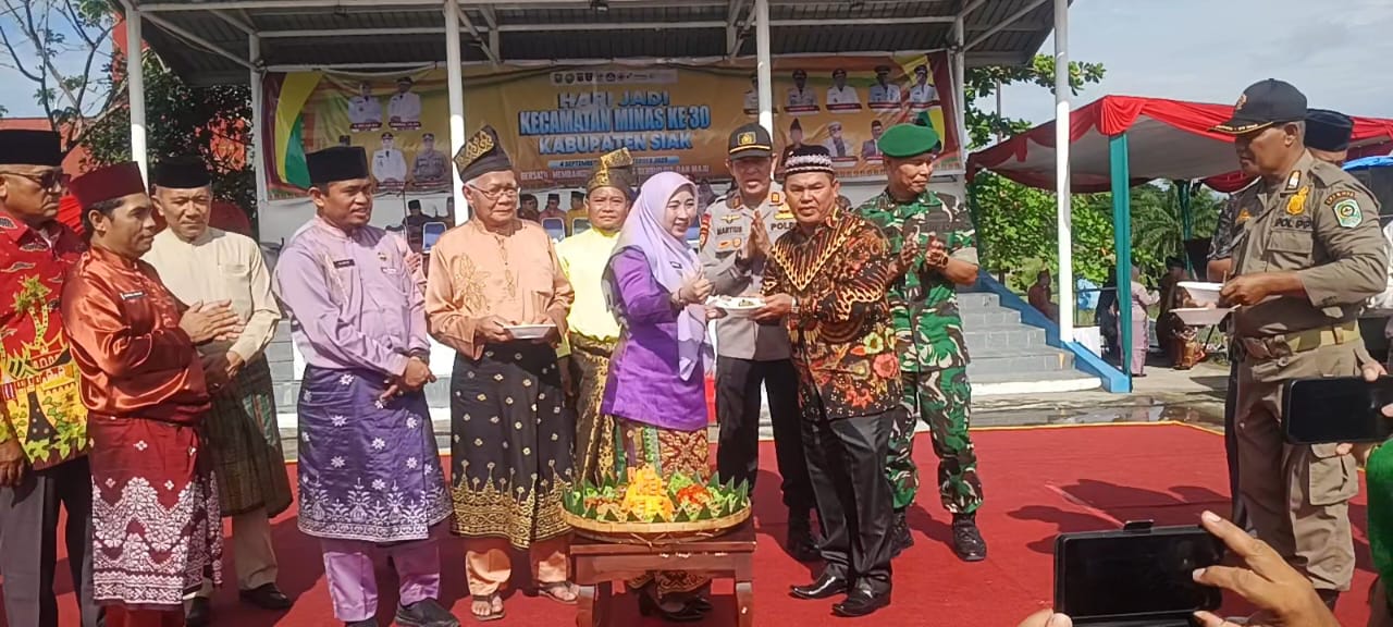 Siak, Catatanriau.com – Peringatan Hari Jadi ke-30 Kecamatan Minas berlangsung meriah dan penuh kebersamaan. Acara yang digelar selama lima hari, mulai 31 Agustus hingga 4 September 2025, dipusatkan di Lapangan Bola Minas Barat, Kecamatan Minas, Kabupaten Siak. Pada perayaan puncaknya, yakni pada Kamis (4/9), diawali dengan apel pagi dipimpin oleh Camat Minas, Nurfa Octalita SE., Seusai apel juga dilakukan prosesi pemotongan tumpeng.