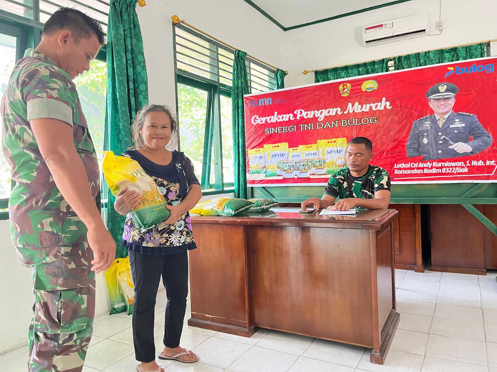 Danramil 04/Perawang, Lettu Inf Ayub Edi Harahap, menyampaikan bahwa kegiatan ini merupakan bentuk kepedulian TNI bersama Bulog terhadap masyarakat.