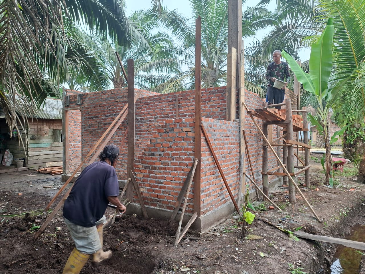 Di lokasi pembangunan, tampak anggota Satgas TMMD bersama warga setempat bahu-membahu membangun rumah dengan semangat gotong royong. Dinding rumah mulai berdiri, sementara material seperti batu bata dan kayu telah disiapkan untuk mempercepat proses penyelesaian.