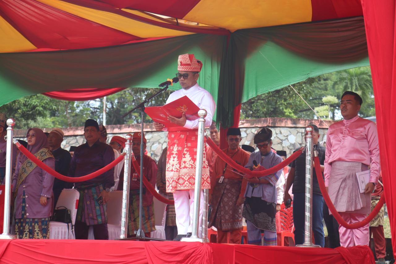 Upacara dimulai dengan pembacaan Teks Pancasila yang diikuti dengan pembacaan Visi dan Misi Kabupaten Pelalawan Tahun 2025–2029. Bupati Pelalawan H. Zukri SM, MM bertindak sebagai Inspektur Upacara, menyampaikan amanat penuh makna tentang pentingnya menjaga kedamaian, kerukunan, dan kebersamaan di tengah masyarakat.