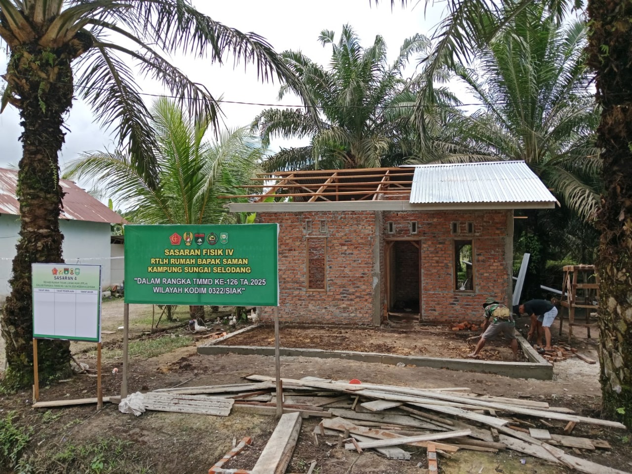 Siak, Catatanriau.com — Memasuki hari ke-10 pelaksanaan TNI Manunggal Membangun Desa (TMMD) ke-126 TA 2025, Satgas TMMD Kodim 0322/Siak terus menggenjot penyelesaian sejumlah sasaran fisik, di antaranya Sasaran IV berupa pembangunan Rumah Tidak Layak Huni (RTLH) milik Pak Saman, serta pembangunan MCK dan sasaran fisik lainnya di lokasi kegiatan.