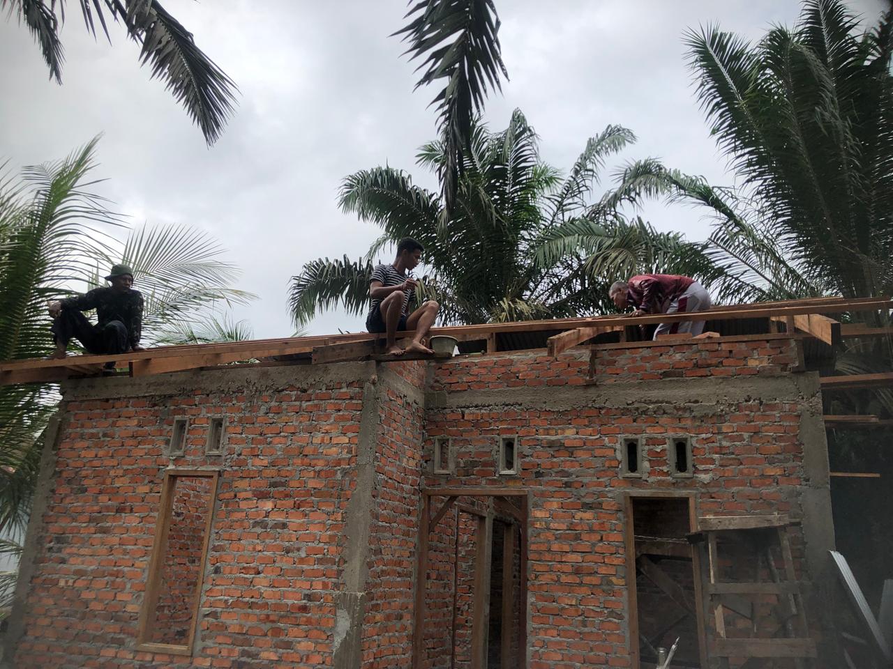 Di sasaran RTLH Pak Saman, personel Satgas bersama masyarakat melanjutkan proses pemasangan dinding dan perapian struktur atap rumah. Gotong royong tampak kuat di lapangan, di mana warga ikut membantu mengangkat bahan bangunan dan membersihkan area sekitar rumah agar proses kerja berjalan lancar.