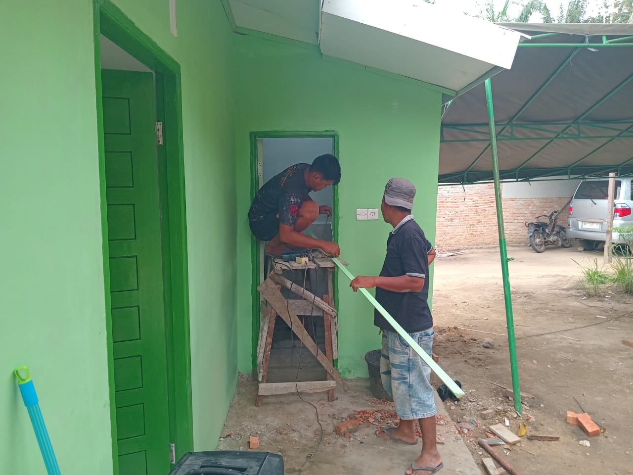 Di Sasaran IV, rumah milik Bapak Saman kini berdiri kokoh dan tampak asri dengan dinding hijau cerah. Satgas TMMD bersama warga menyempurnakan bagian akhir berupa pemasangan lis pintu, pengecatan pagar, serta perapian halaman. Program Rumah Tidak Layak Huni (RTLH) ini menjadi wujud nyata kepedulian TNI terhadap kesejahteraan masyarakat prasejahtera.