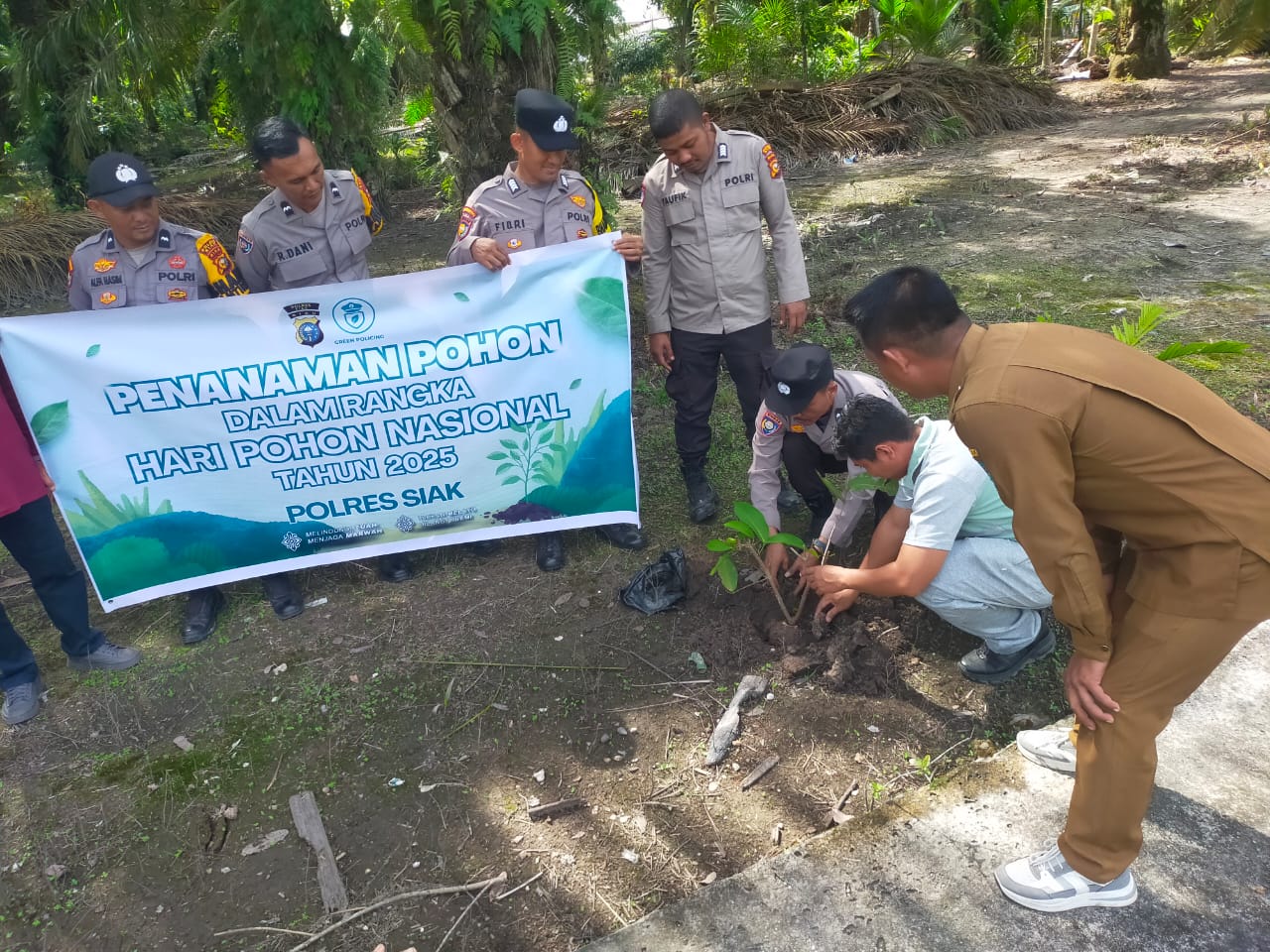 Siak, Catatanriau.com — Dalam rangka memperingati Hari Pohon Nasional dan mendukung program Green Policing dari Kepolisian Republik Indonesia, Polsek Sungai Apit melaksanakan kegiatan penanaman pohon serentak di halaman Kantor Penghulu Kampung Parit I/II, Kecamatan Sungai Apit, Kabupaten Siak, Selasa (11/11/2025) pukul 09.30 WIB.