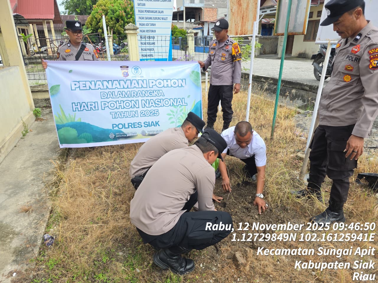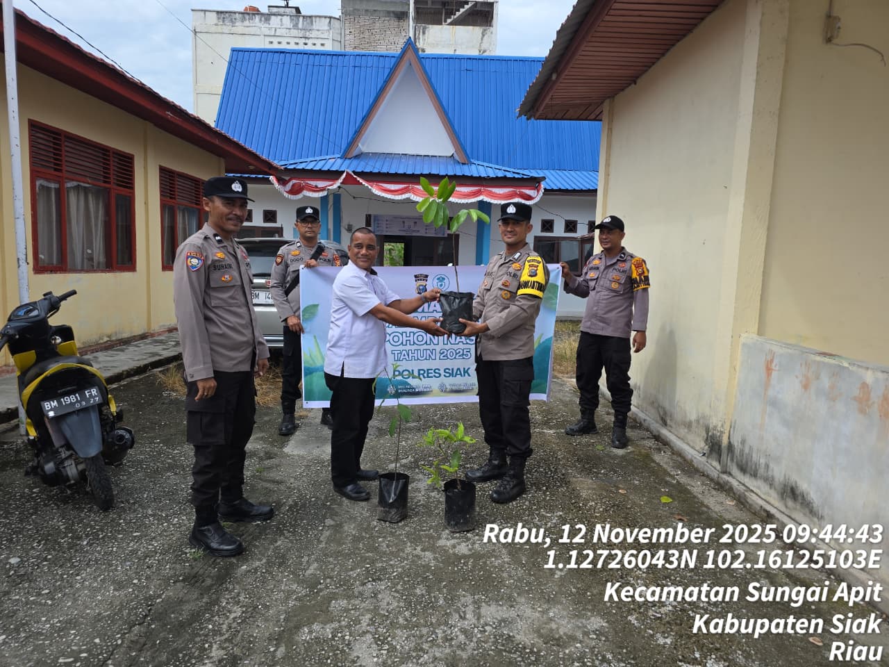 Siak, Catatanriau.com – Dalam rangka memperingati Hari Pohon Nasional, Polsek Sungai Apit kembali melaksanakan Program Green Policing sebagai bentuk nyata kepedulian terhadap kelestarian lingkungan hidup. Kegiatan ini berlangsung pada Rabu (12/11/2025) pukul 09.30 WIB di halaman Kantor Kelurahan Sungai Apit, Kabupaten Siak.