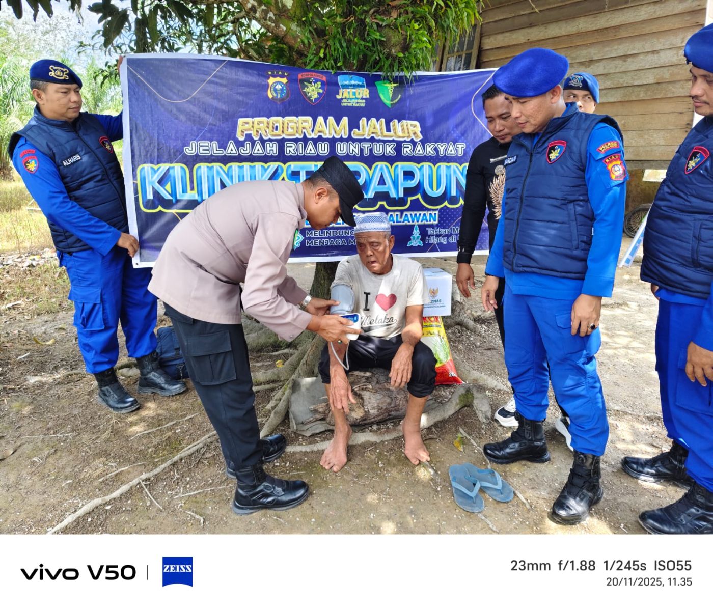 PELALAWAN,CATATANRIAU.COM, – Dalam komitmen memperkuat pelayanan publik hingga ke pelosok pesisir, Polairud Polres Pelalawan bersama Baznas Pelalawan kembali melaksanakan Program JALUR (Jelajah Riau Untuk Rakyat) di Desa Sering, Kecamatan Pelalawan. Kegiatan ini menyasar masyarakat pedalaman Sungai Kampar yang selama ini hidup jauh dari akses pelayanan umum.