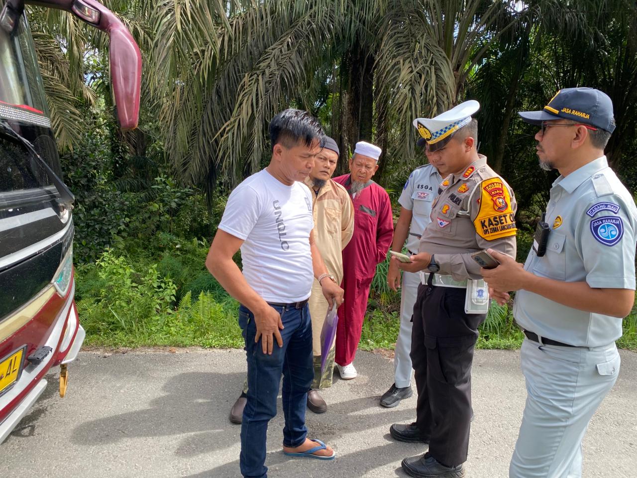Bertempat di Jalan Lintas Timur Km 46+200, tepat di depan Pos Lantas Kiyab Jaya, tim gabungan memeriksa satu per satu sopir yang dihentikan. Kasat Lantas AKP Tatit menjelaskan bahwa kegiatan ini bertujuan memastikan bahwa setiap pengemudi dalam kondisi sehat, tidak berada di bawah pengaruh alkohol maupun narkotika, sehingga dapat berkendara dengan aman demi keselamatan penumpang dan pengguna jalan lainnya.