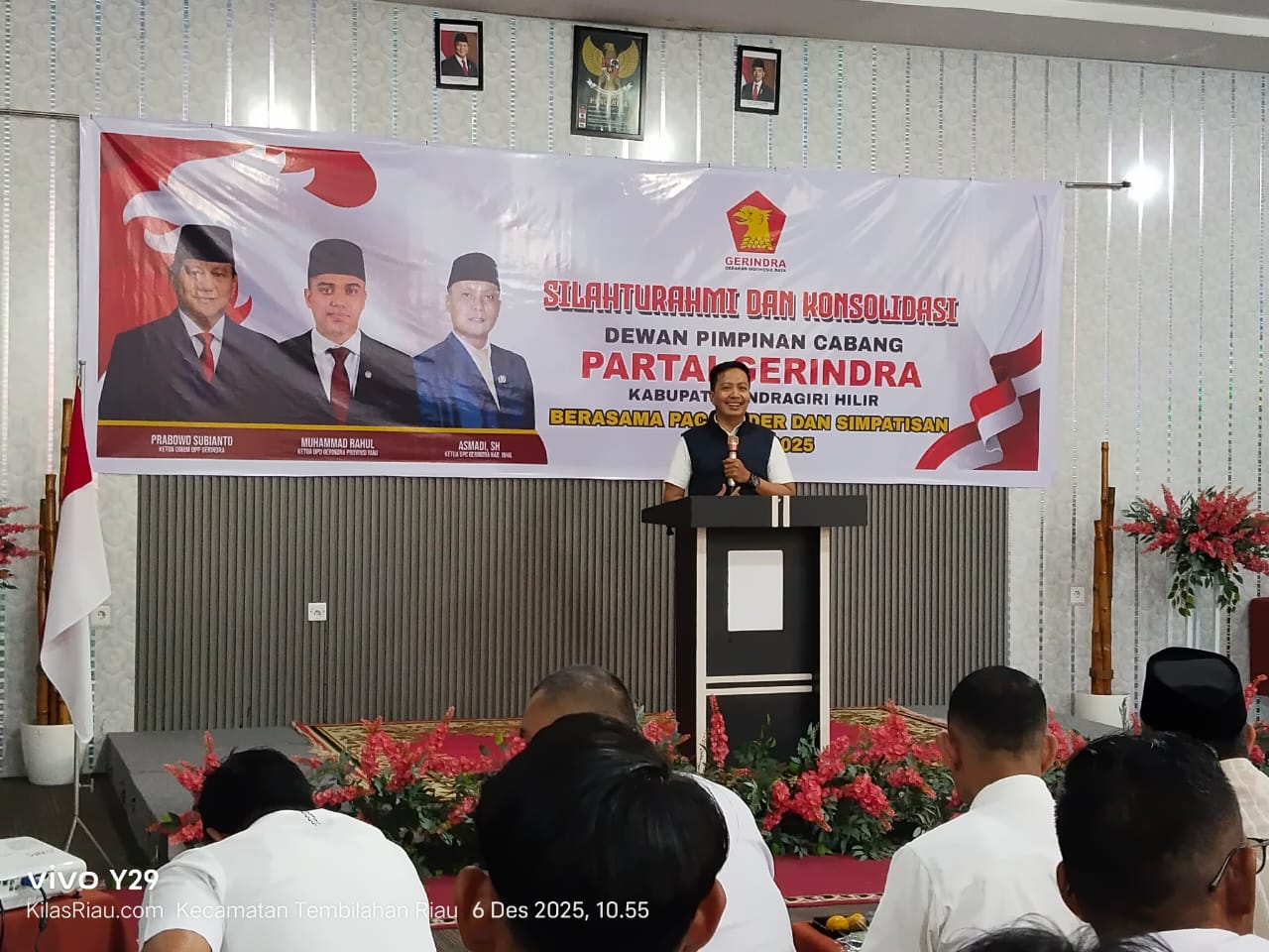 Inhil, Catatanriau.com – Ketua Fraksi Gerindra DPRD Kabupaten Indragiri Hilir (Inhil), Asmadi, menghadiri kegiatan silaturahmi dan konsolidasi Dewan Pimpinan Cabang (DPC) Partai Gerindra Kabupaten Inhil bersama Pengurus Anak Cabang (PAC), kader dan simpatisan, di Aula Hotel Top 5 Tembilahan, Sabtu (6/12/2025).