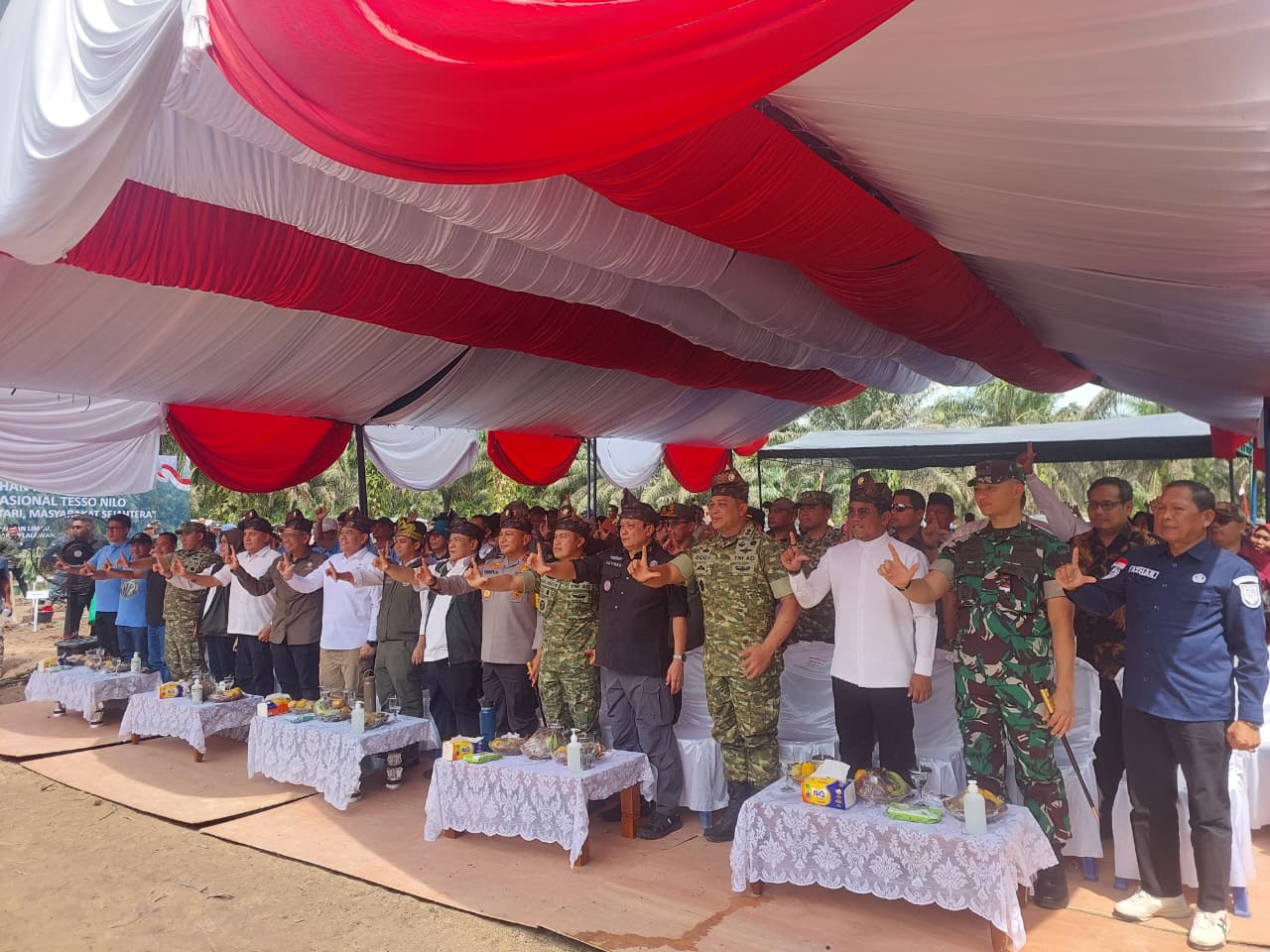 Kegiatan ini dihadiri langsung Menteri Kehutanan Raja Juli Antoni, Ph.D., bersama Wakil Menteri ATR/Wakil Kepala BPN Ossy Dermawan, B.S., M.Sc., Plt Gubernur Riau Ir. H. SF Hariyanto, MT, Pangdam I/Bukit Barisan Mayjen TNI Agus Hadi Waluyo, Kapolda Riau Irjen Pol Dr. Herry Herjawan, Kajati Riau Sutikno, serta Bupati Pelalawan H. Zukri Misran, SM., MM. Turut hadir pula jajaran kementerian terkait, TNI-Polri, dan unsur Forkopimda Pelalawan.