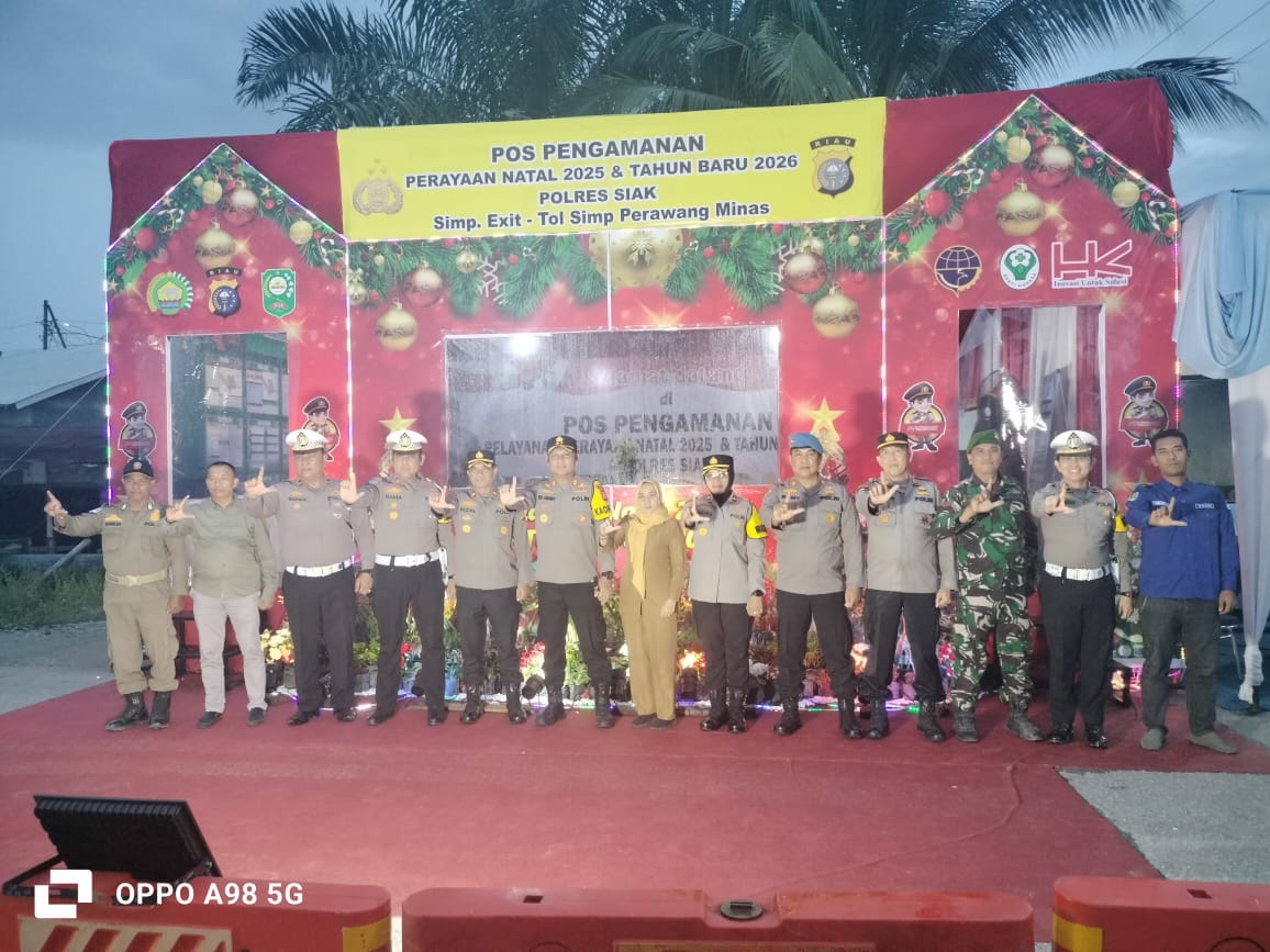 Siak, Catatanriau.com — Kapolres Siak AKBP Eka Ariandy Putra, S.H., S.I.K., M.Si, melakukan pengecekan langsung Pos Pengamanan (Pos Pam) Natal 2025 dan Tahun Baru 2026 di Pos Pam Exit Tol Minas, Kecamatan Minas, Kabupaten Siak, Senin (22/12/2025) sore. Kegiatan ini merupakan bagian dari Operasi Lilin Lancang Kuning Tahun 2025 guna memastikan kesiapan personel dan sarana prasarana pengamanan menjelang perayaan Natal dan Tahun Baru.