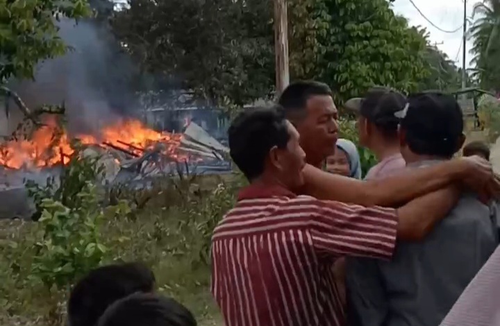 “Kasihannya yang punya rumah, rumahnya terbakar habis tak tersisa. Itu rumah Pak Kepala Desa Kembang Mekar Sari,” ujar Nur Eni kepada wartawan.