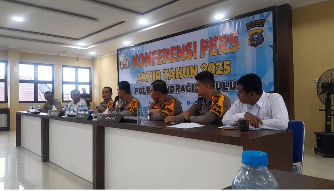 Inhu, Catatanriau.com – menggelar Press Release Akhir Tahun 2025 yang memaparkan capaian kinerja serta penanganan gangguan keamanan dan ketertiban masyarakat (Kamtibmas) sepanjang tahun 2025. Konferensi pers tersebut dipimpin langsung oleh dan dilaksanakan di Mapolres Inhu, Selasa siang (30/12/2025).