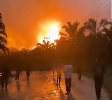 Inhil, Catatanriau.com — Ledakan hebat pipa gas terjadi di , Kecamatan Kemuning, , Jumat sore (02/01/2026) sekitar pukul 17.00 WIB. Insiden tersebut memicu kobaran api besar yang menyulut aliran gas, membumbung tinggi hingga diperkirakan mencapai 100 meter, disertai kepulan asap hitam pekat. Langit di sekitar lokasi tampak memerah akibat panas ekstrem.