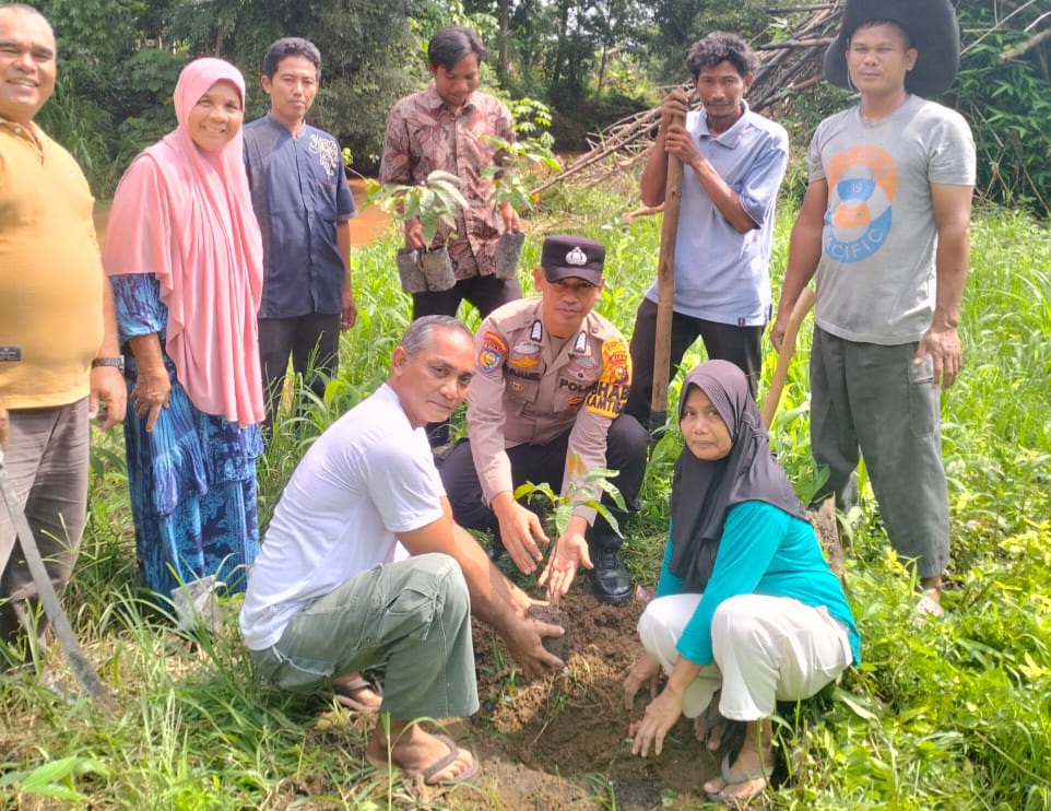 Rohul, Catatanriau.com – Dalam rangka memperingati Hari Sejuta Pohon sekaligus mendukung program Green Policing yang dicanangkan Polda Riau, Bhabinkamtibmas Polres Rokan Hulu ajak masyarakat melaksanakan kegiatan penanaman pohon bersama di bantaran sungai desa koto tinggi.