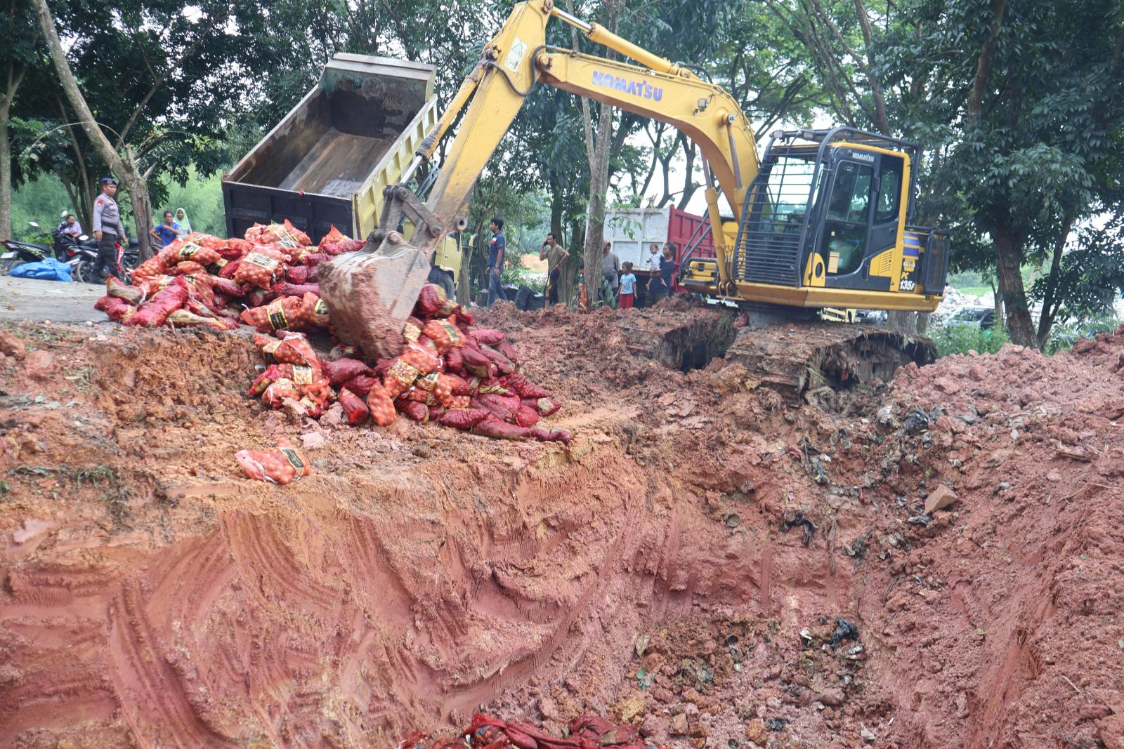 Pemusnahan barang bukti ini dilakukan setelah adanya putusan Pengadilan Negeri Pelalawan serta berdasarkan rekomendasi Balai Karantina Hewan, Ikan, dan Tumbuhan Provinsi Riau. Proses pemusnahan dilakukan dengan cara mengubur bawang ilegal menggunakan alat berat ekskavator, yang sebelumnya diangkut ke lokasi TPA menggunakan empat unit dump truck colt diesel.
