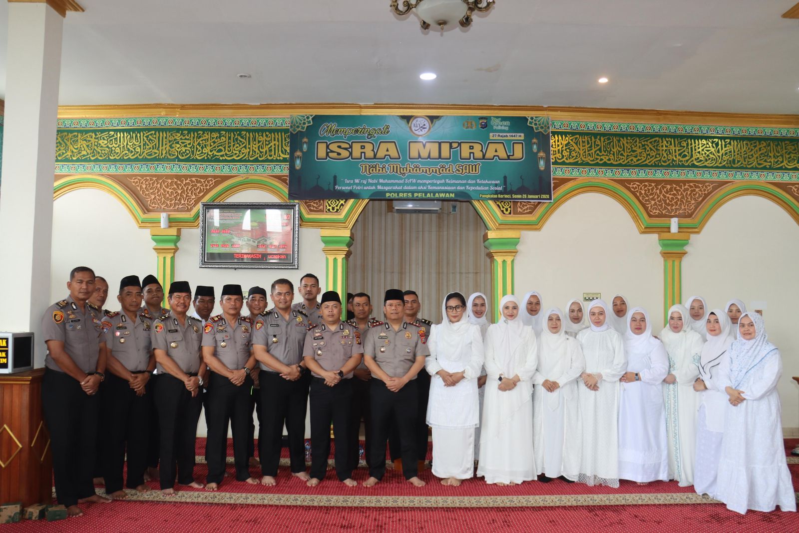 Polres Pelalawan memperingati Isra Mi’raj Nabi Muhammad SAW dengan penuh khidmat di Masjid Baitussalamah Polres Pelalawan, Senin, 26 Januari 2026