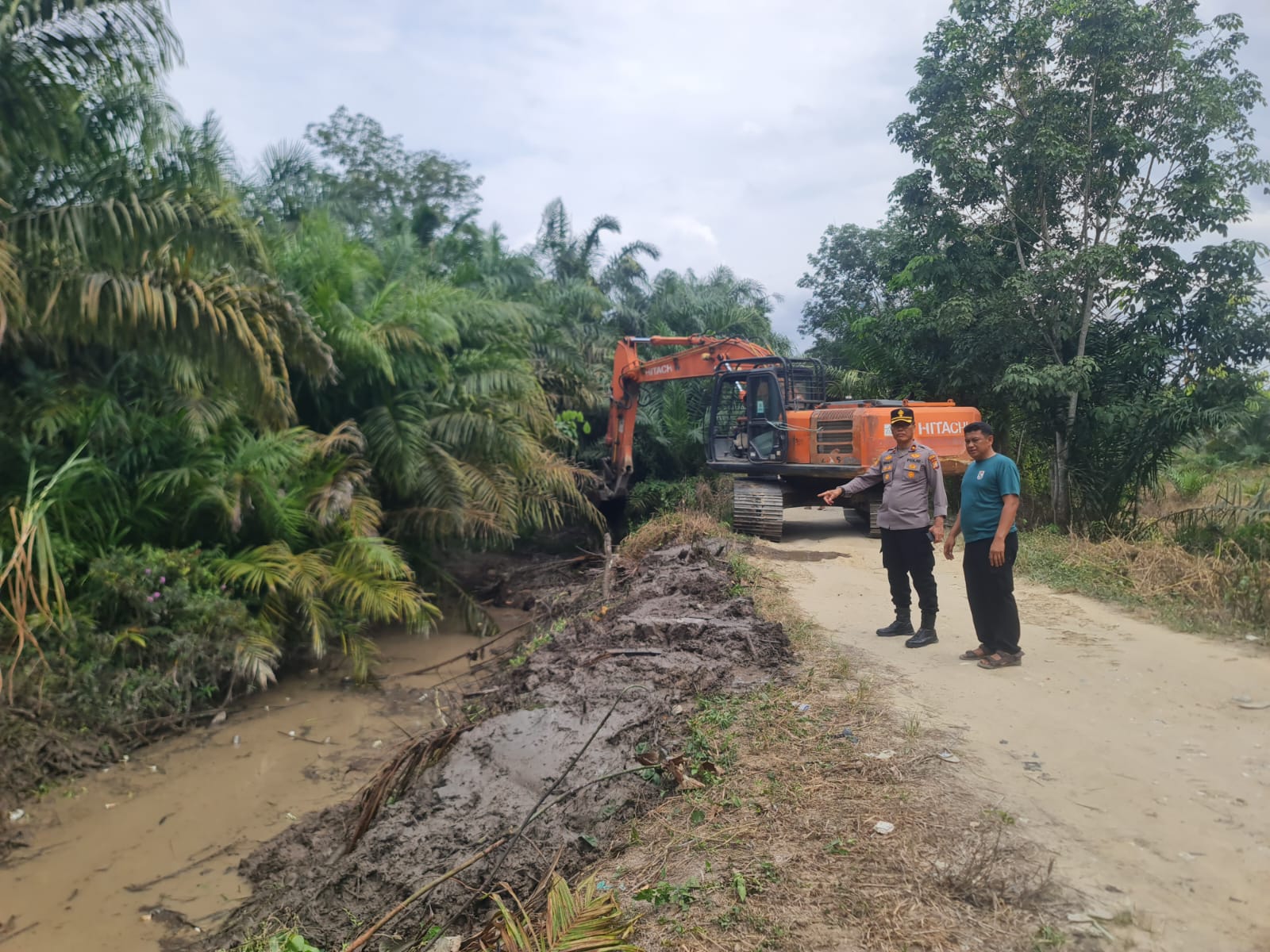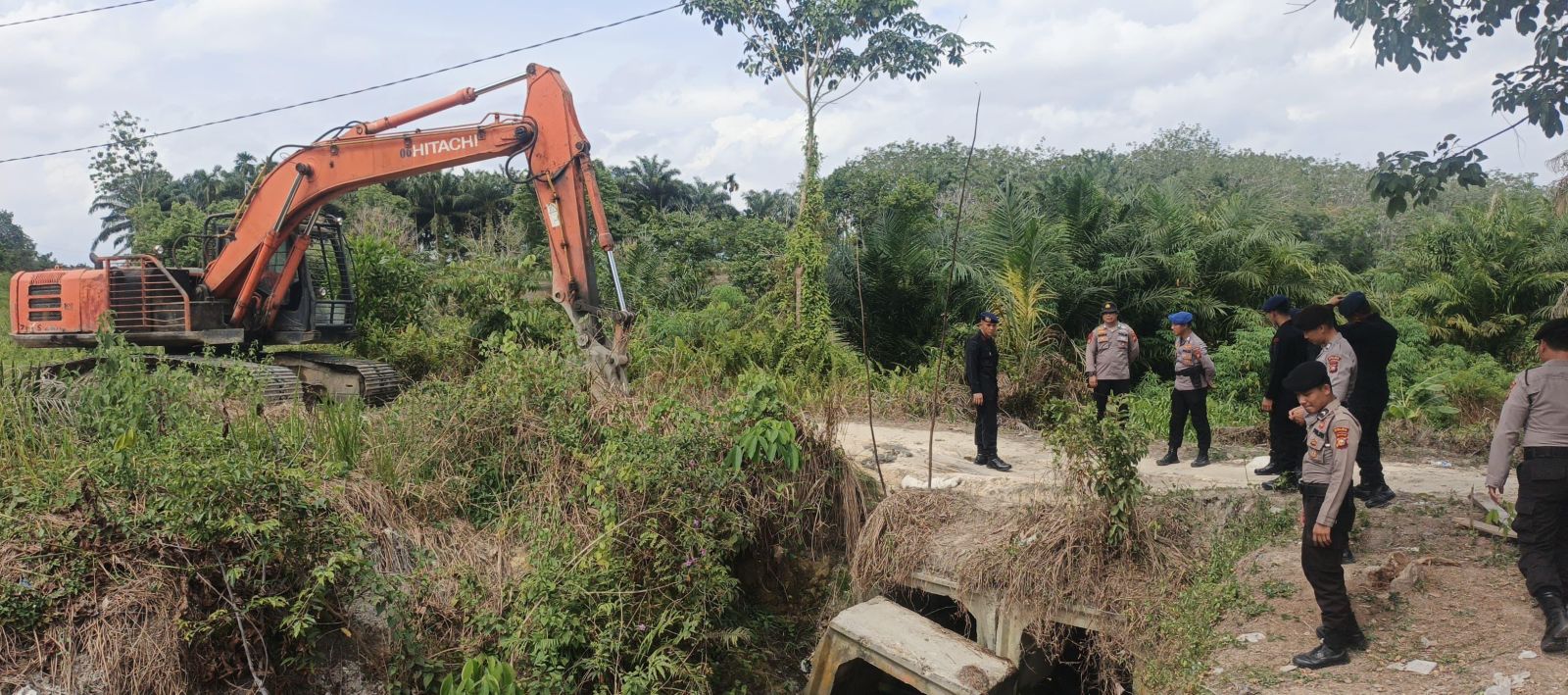 Pembangunan dan renovasi jembatan presisi Polri ini menggunakan satu unit alat berat excavator PC 200 merek Hitachi.