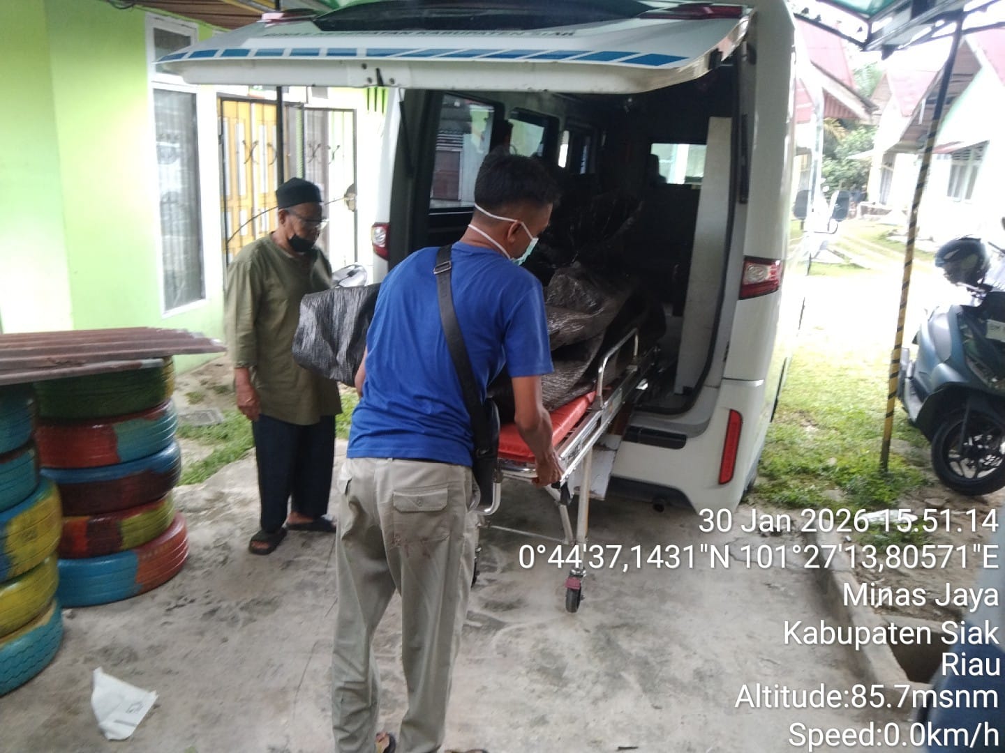 Petugas kepolisian bersama tim medis dari Puskesmas Minas melakukan pemeriksaan luar terhadap jenazah. Hasil sementara, tidak ditemukan tanda-tanda kekerasan atau indikasi tindak pidana.