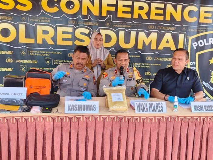 Wakil Kepala Polres Dumai, KOMPOL Rahmad Syah, S.Kom., S.I.K., M.I.K., dalam konferensi pers yang didampingi Kasat Narkoba AKP Riza Effyandi, S.H., M.H., serta Kasi Humas AKP Zaidi Waluyo, menjelaskan bahwa penangkapan tersebut dilakukan setelah adanya informasi awal dari masyarakat yang segera ditindaklanjuti oleh tim Satresnarkoba.