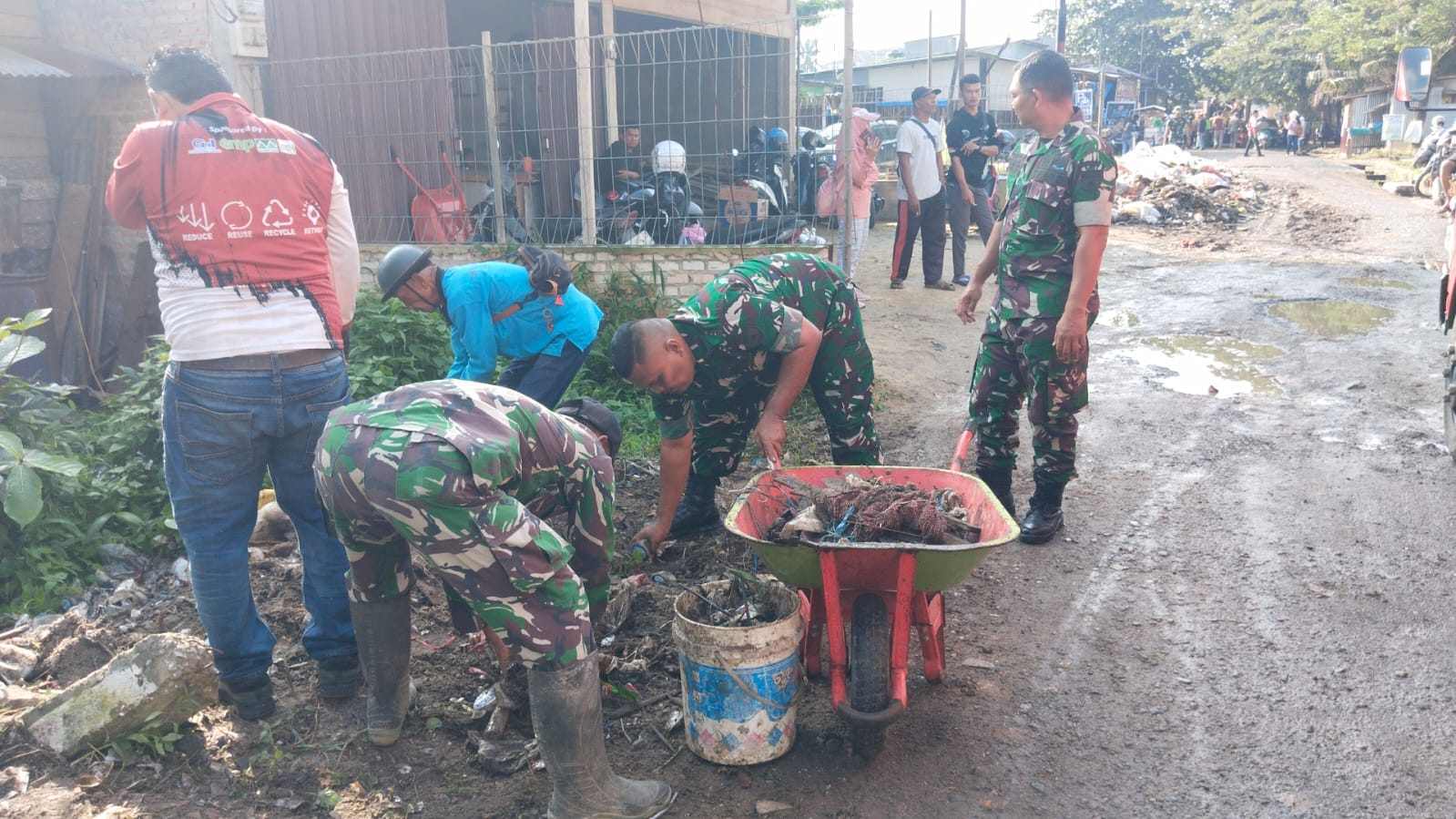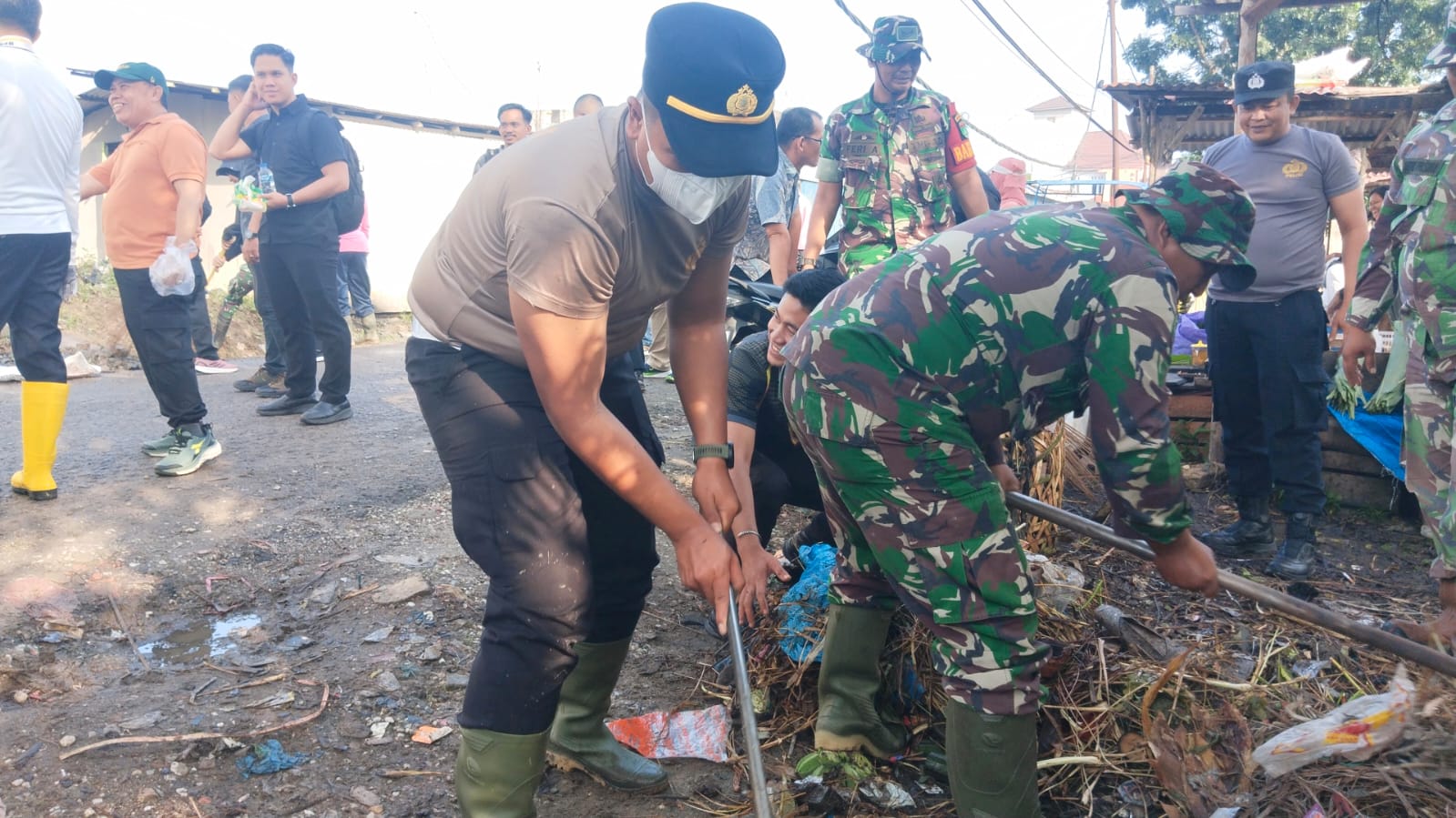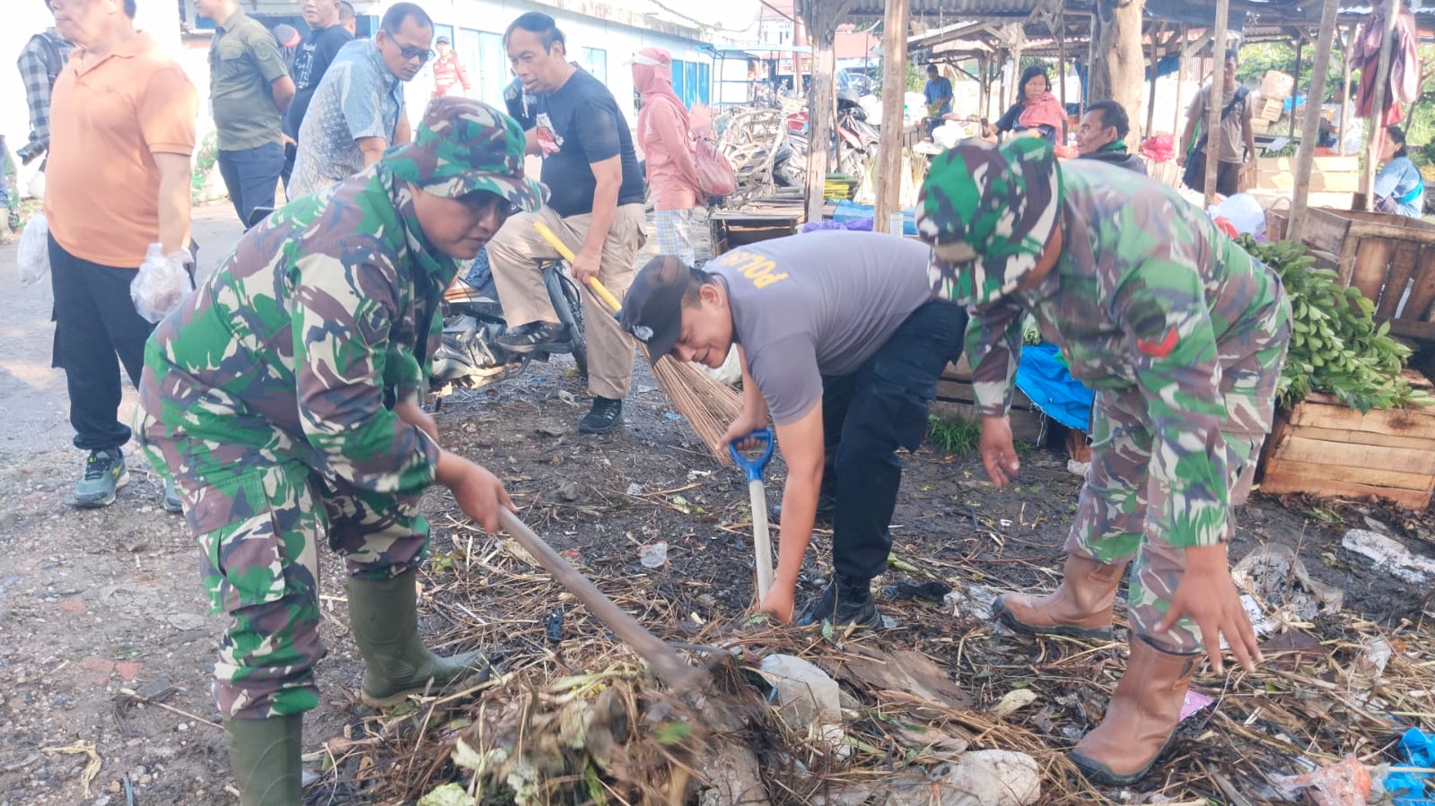 Gotong royong tersebut diikuti oleh 35 personel TNI, 30 personel Polres Pelalawan, 15 personel Satpol PP, 30 personel DLH Pelalawan, 5 personel Dishub, 8 mahasiswa, 20 siswa Pramuka SMKN 1 Pangkalan Kerinci, serta 20 orang warga yang secara aktif membersihkan kawasan pasar.