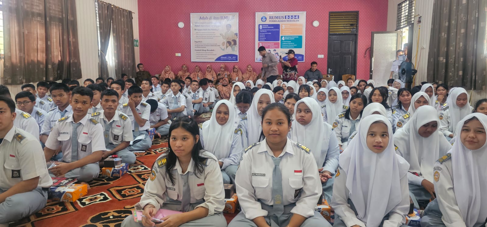 Suasana sosialisasi berlangsung hangat dan interaktif. Para siswa tampak aktif bertanya dan menjawab tantangan yang diberikan. H. Abdul Hamid pun merespons secara lugas, membagikan hadiah bagi siswa yang aktif, serta menyampaikan kisah perjalanan hidupnya sebagai motivasi dan inspirasi.