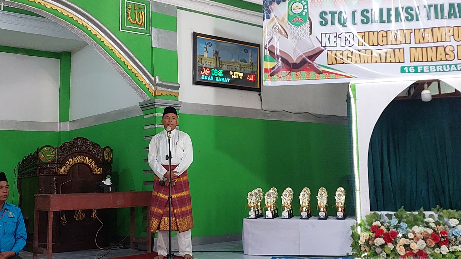 Siak, Catatanriau.com – Pelaksanaan Seleksi Tilawatil Qur’an (STQ) ke-13 Tingkat Kampung Minas Barat, Kecamatan Minas, Kabupaten Siak, Riau, digelar khidmat di Masjid Al-Hijrah Kilometer 40, Senin (16/02/2026) pagi. Kegiatan ini menjadi penutup rangkaian STQ tingkat kelurahan dan kampung se-Kecamatan Minas.