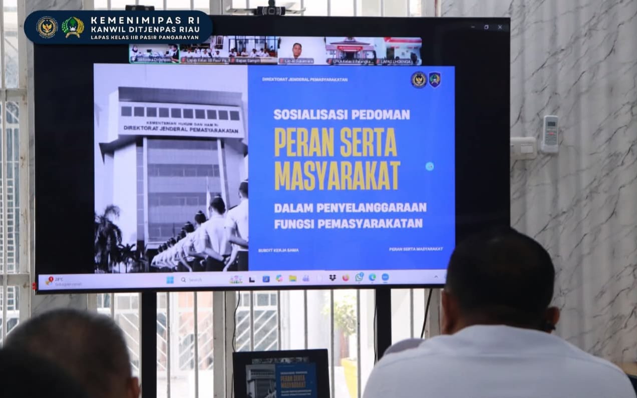 Rohul, Catatanriau.com - Lembaga Pemasyarakatan (Lapas) Kelas IIB Pasir Pangarayan mengikuti kegiatan Sosialisasi Pedoman Peran Serta Masyarakat (PSM) dalam Penyelenggaraan Fungsi Pemasyarakatan yang diselenggarakan secara virtual oleh Direktorat Jenderal Pemasyarakatan melalui Direktorat Teknologi Informasi dan Kerja Sama pada Rabu, (4/4/2026).