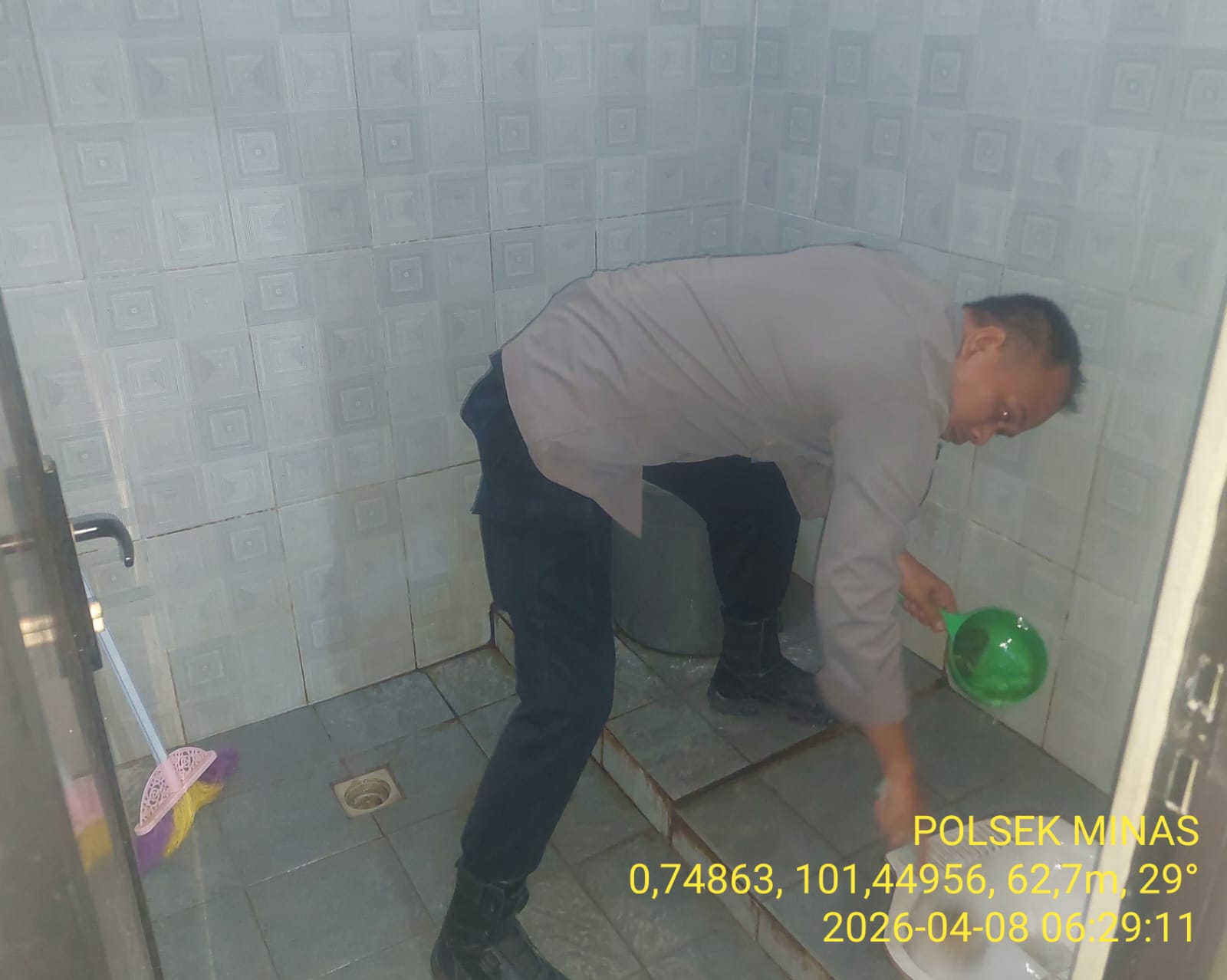 Wakapolsek Minas, AKP Martius Ashairi S.H., mewakili Kapolsek Minas, menyampaikan bahwa kegiatan ini bertujuan untuk memberikan contoh langsung kepada masyarakat mengenai pentingnya pola hidup bersih.