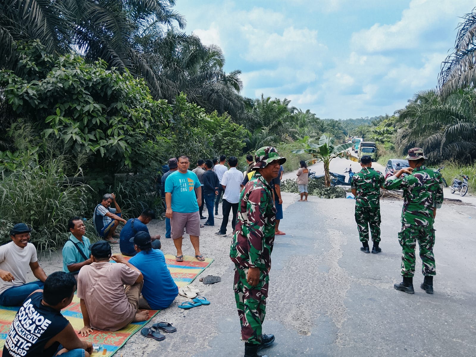 Siak, Catatanriau.com — Aksi penyetopan jalan jilid II yang dilakukan masyarakat di wilayah Kecamatan Minas, Kabupaten Siak, berlangsung sejak Senin pagi (13/4) dan mendapat pengamanan langsung dari jajaran Koramil 03/Minas. Kehadiran Danramil bersama personel di lapangan menjadi kunci dalam menjaga situasi tetap aman dan terkendali.