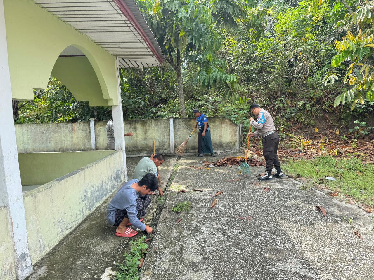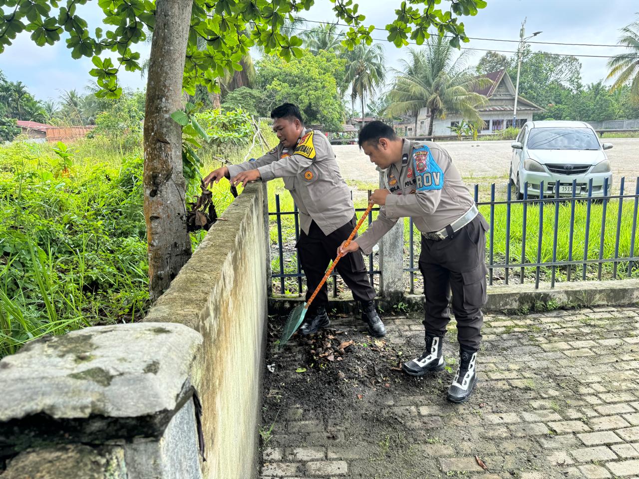 Dalam kegiatan tersebut, Polsek Minas bersama masyarakat melakukan kerja bakti membersihkan lingkungan masjid, memberikan edukasi tentang pentingnya menjaga kelestarian alam, serta menanam 15 bibit pohon sebagai bentuk aksi nyata.