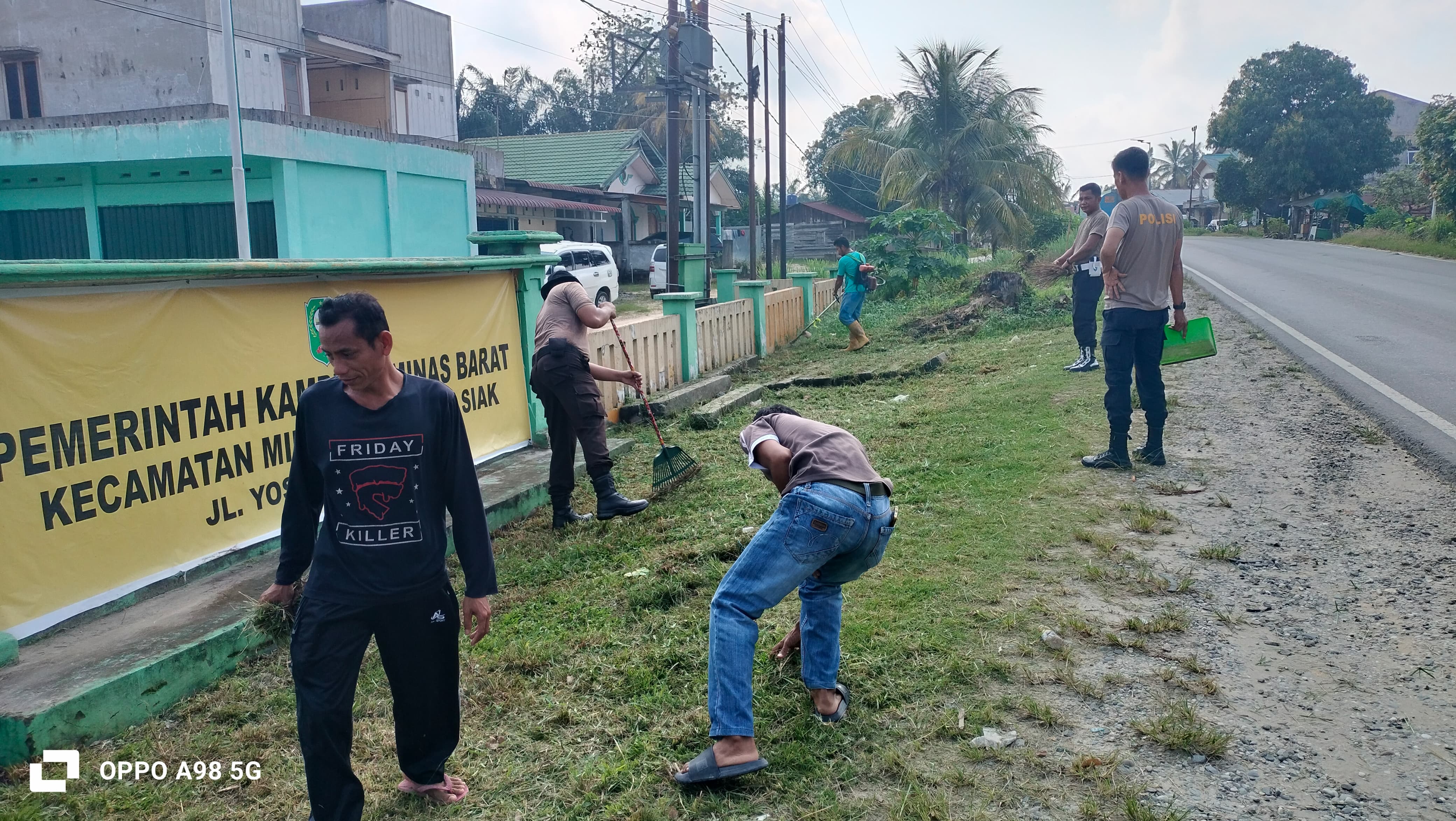 Siak, Catatanriau.com — Jajaran Polsek Minas melaksanakan kegiatan karya bakti (kurve) kebersihan lingkungan pada Jumat pagi (24/4/2026) sekitar pukul 08.30 WIB. Kegiatan ini berlangsung di halaman Kantor Kampung Minas Barat, Jalan Yos Sudarso Km 33, Kecamatan Minas, Kabupaten Siak.